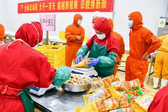 比賽分為兩個(gè)項(xiàng)目:小酥肉原料肉切肉比賽和小酥肉包裝比賽。公司屠宰車間、分割車間、調(diào)理品車間、副產(chǎn)車間和熟食車間共派出6支參賽隊(duì)伍。小酥肉原料肉切肉比賽每個(gè)隊(duì)伍時(shí)間限定20分鐘,在20分鐘內(nèi)根據(jù)所切肉條的重量和完成質(zhì)量評(píng)定名次。鍋圈小酥肉包裝比賽每個(gè)隊(duì)伍包裝300袋(約80kg)小酥肉,根據(jù)所用時(shí)間和包裝合格率評(píng)定。比賽開始之前,熟食廠經(jīng)理張沛宣布了比賽的規(guī)則,叮囑參賽選手在比賽中注意安全,隨后比賽拉開了帷幕。